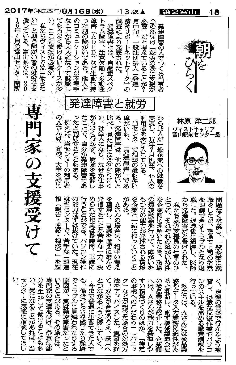 8/16朝日新聞コラム「朝をひらく」に富山スタッフの執筆記事が掲載されました!