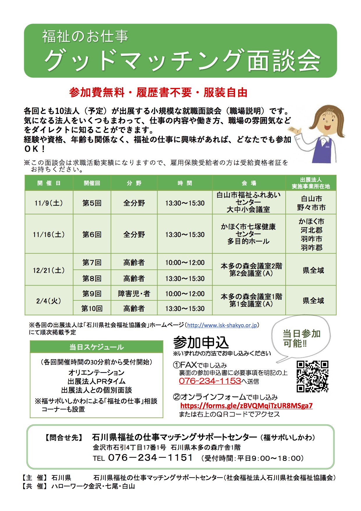 【主 催】 石川県 石川県福祉の仕事マッチングサポートセンター(社会福祉法人石川県社会福祉協議会)