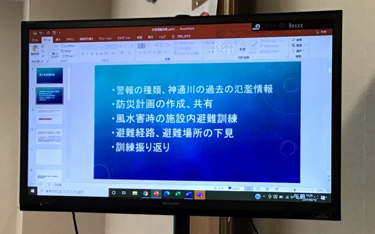今月には風水災害を想定した避難訓練を実施予定です。