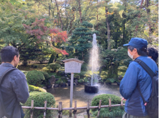 せっかくなので、日本最古の噴水や徽軫灯籠(ことじとうろう)など、名所も巡りました。