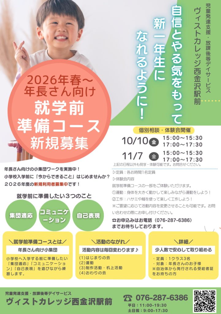 今回はヴィストカレッジ西金沢駅前で行われている、『就学前準備コース』について紹介しました。