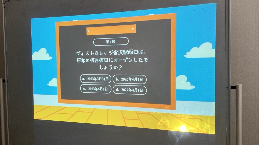 毎年違う問題を出しており、中には「ヴィストカレッジ金沢駅西口にある時計の数は?」といった、少し難しい問題もあります。