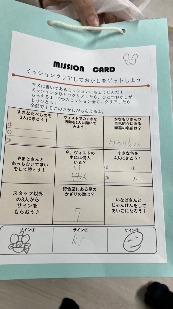全部で9個のミッションをクリアすると、10個のお菓子がもらえるルールです。