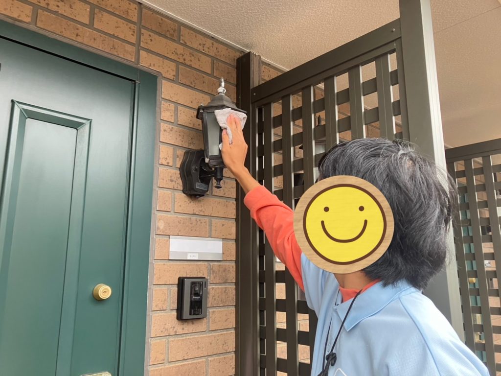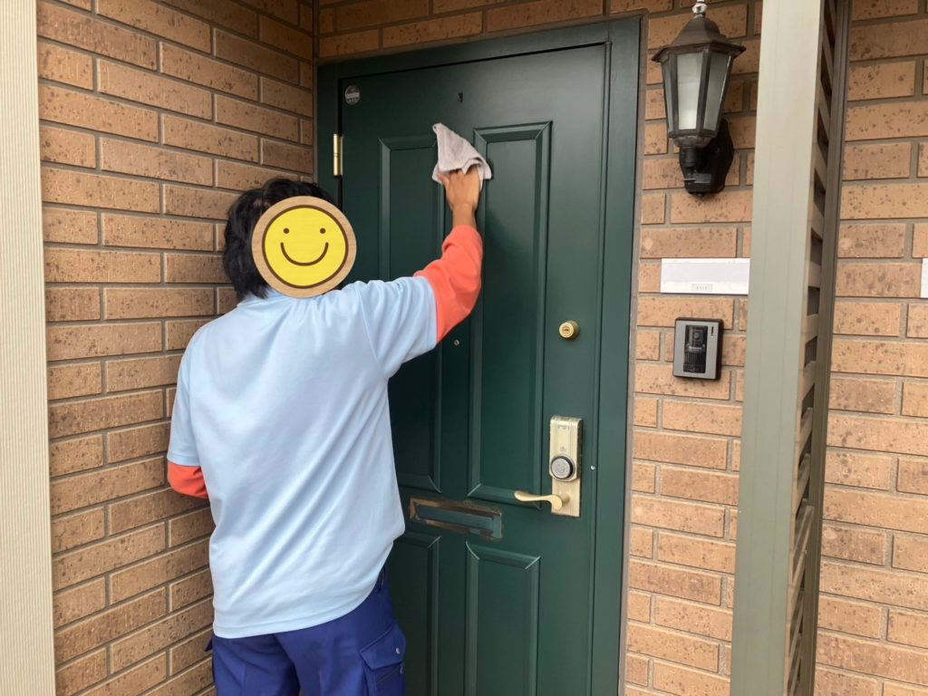 ドア本体やナンバープレート、照明器具も丁寧に拭き上げます。